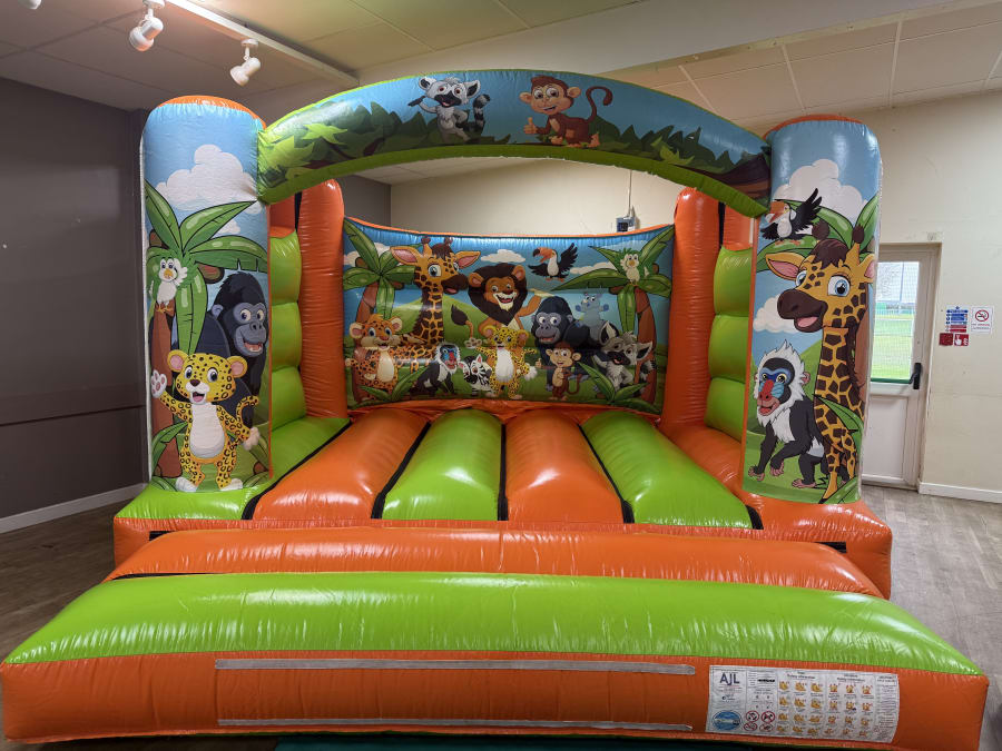 The Jungle Castle 12x12ft is a vibrant and colorful inflatable, featuring a delightful jungle theme that captures the essence of wild adventures. Decorated with friendly jungle animals and lush greenery, it's a playtime paradise for little explorers. The castle's sturdy H-frame design ensures safe and secure bouncing, allowing parents to relax while their children have the time of their lives.